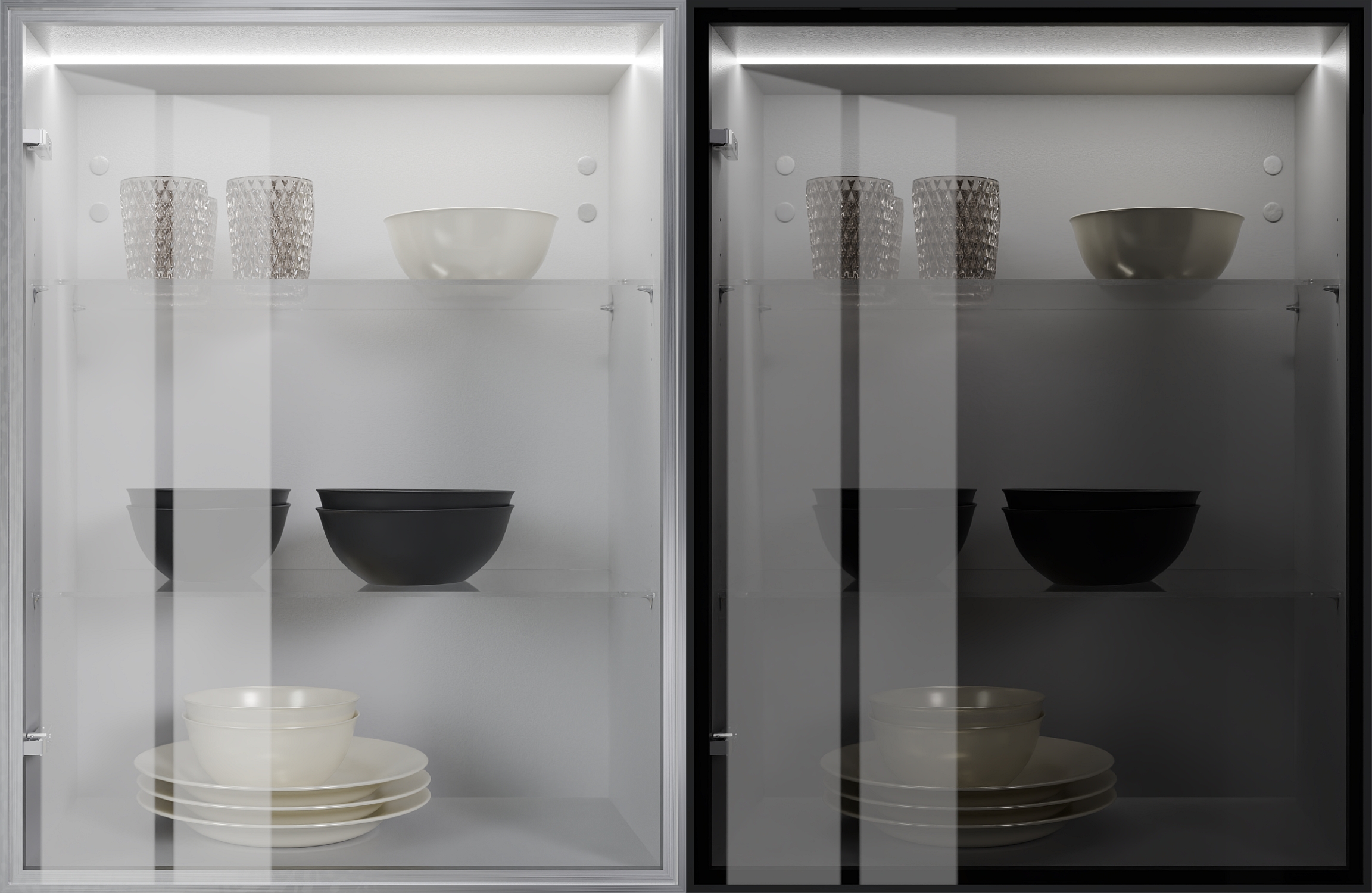Entdecken Sie die Typenvielfalt hochwertiger Gläser für Fronten, die Einblicke in das Innere gewähren. Für eine stimmungsvolle Lichtatmosphäre sorgen die Innenraum- und Schrankbeleuchtungen.